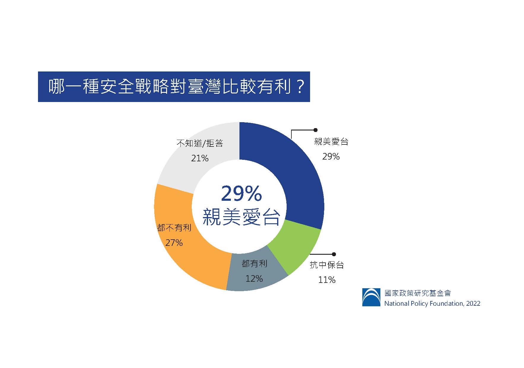 二、29%民眾認為「親美愛台」對台灣比較有利,11%則是「抗中保台」?