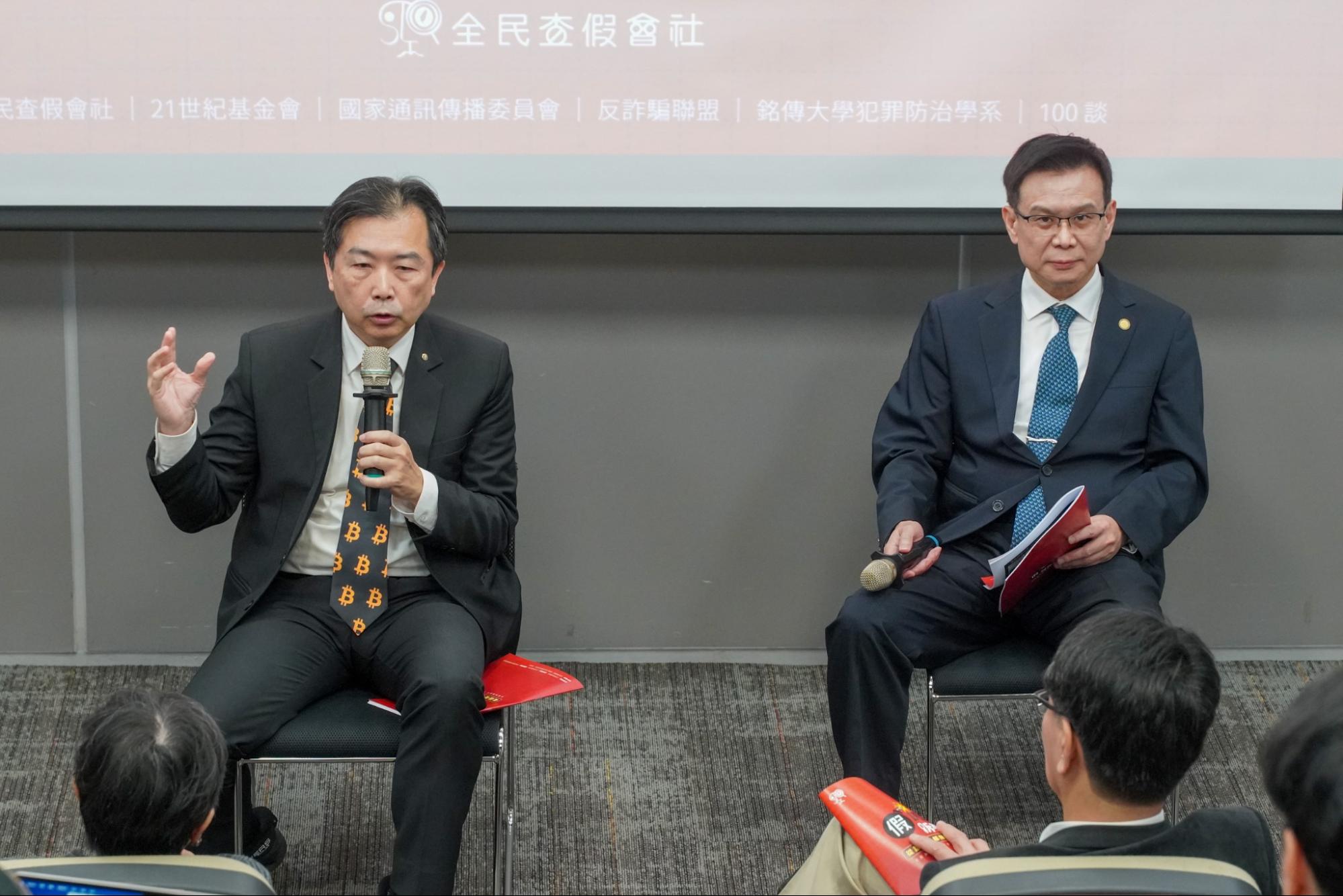 ▲ 專題演講結束後,反詐騙聯盟秘書長林書立(左)、陳茂益(右)與聽眾進行交流對談。(圖/全民查假會社提供)