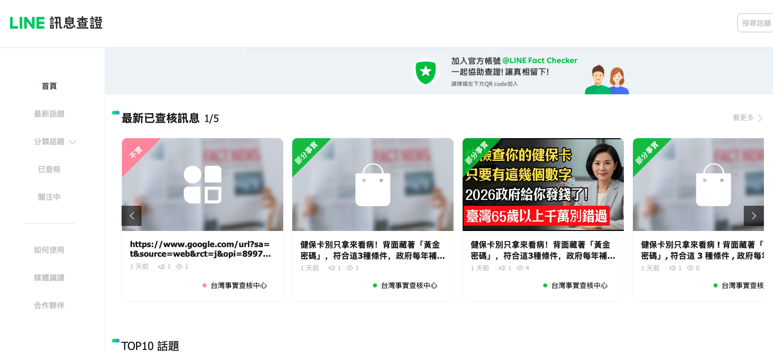 ▲ LINE 在查核領域上的合作夥伴,包含去年 8 月通過國際認證的《全民查假會社》。(圖/翻攝 LINE 訊息查證)