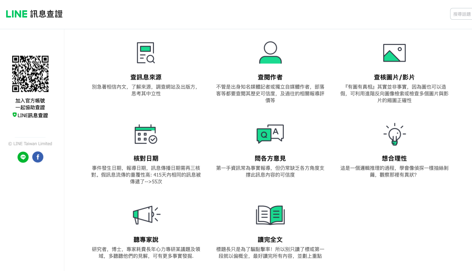 ▲ 「LINE 訊息查證」官網開闢媒體識讀專欄,邀請民眾一同為來路不明的假訊息來場「體檢」。(圖/翻攝 LINE 訊息查證)