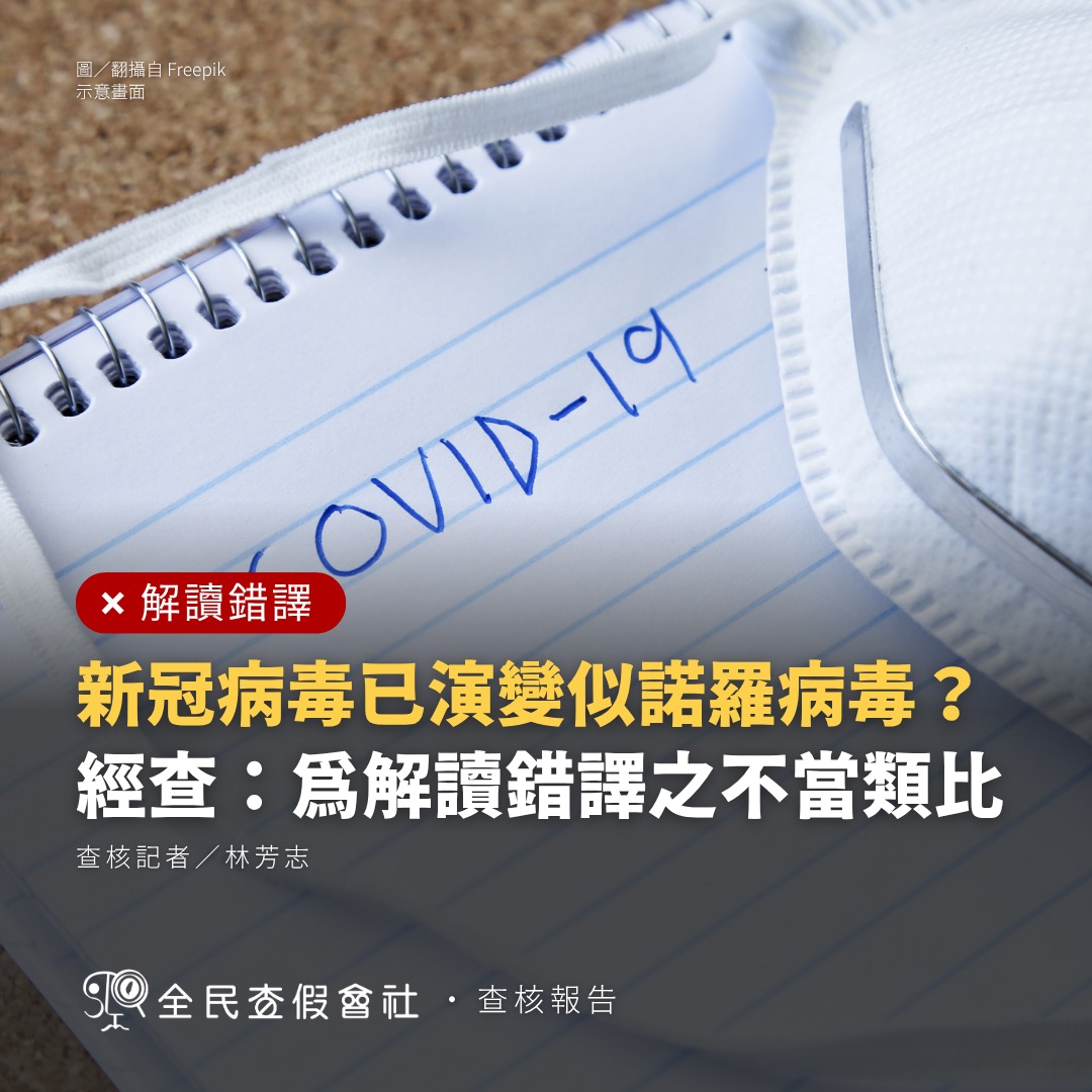 網傳:「《台灣醫界》專業雜誌報導新冠病毒演變跟諾羅相似」為錯誤