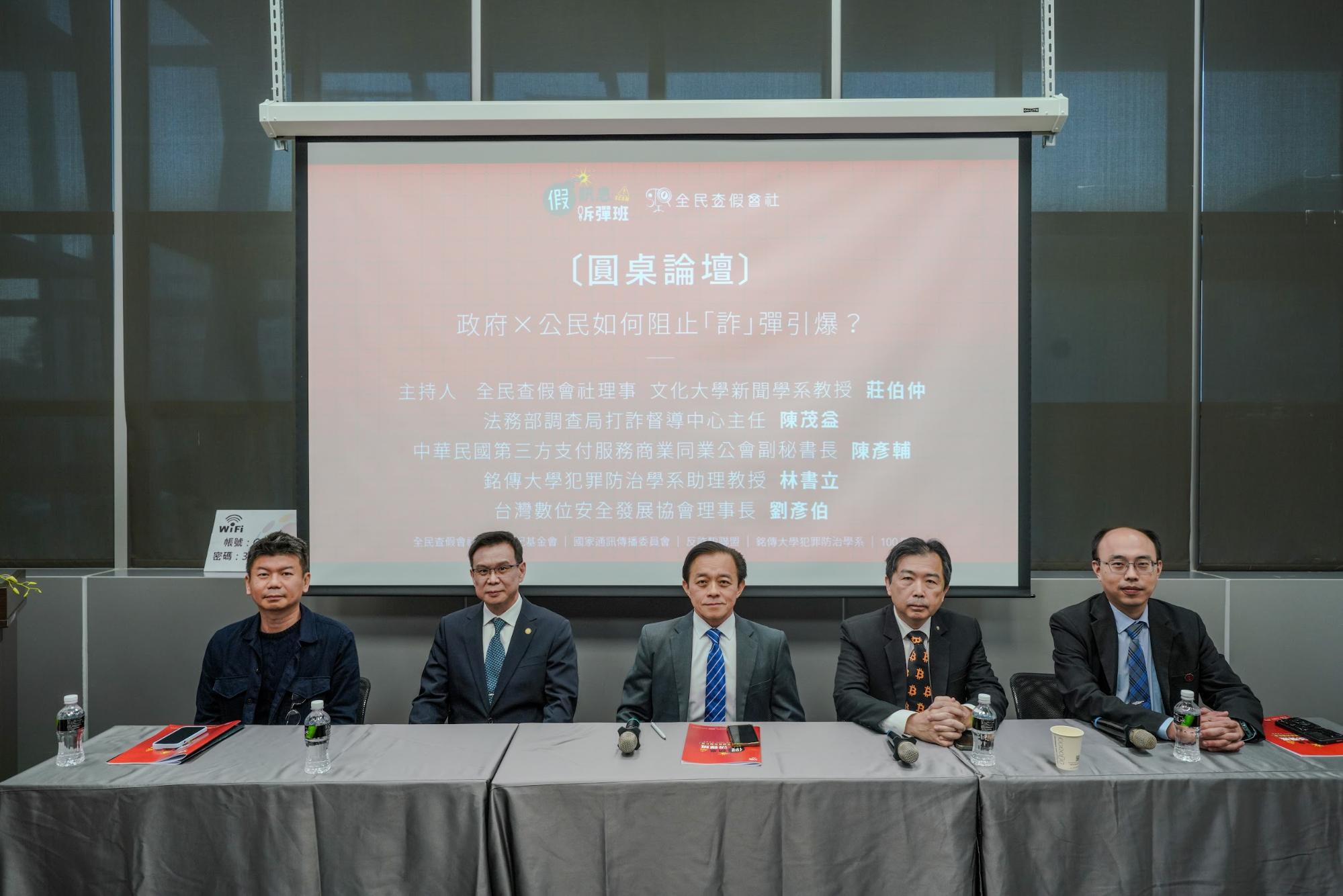 本次論壇的與談人包括法務部調查局經濟犯罪防制處打詐督導中心主任陳茂益、反詐騙聯盟秘書長林書立、中華民國第三方支付服務商業同業公會副秘書長陳彥輔、台灣數位安全發展協會理事長劉彥伯,主持人則為文化大學新聞學系教授莊伯仲。