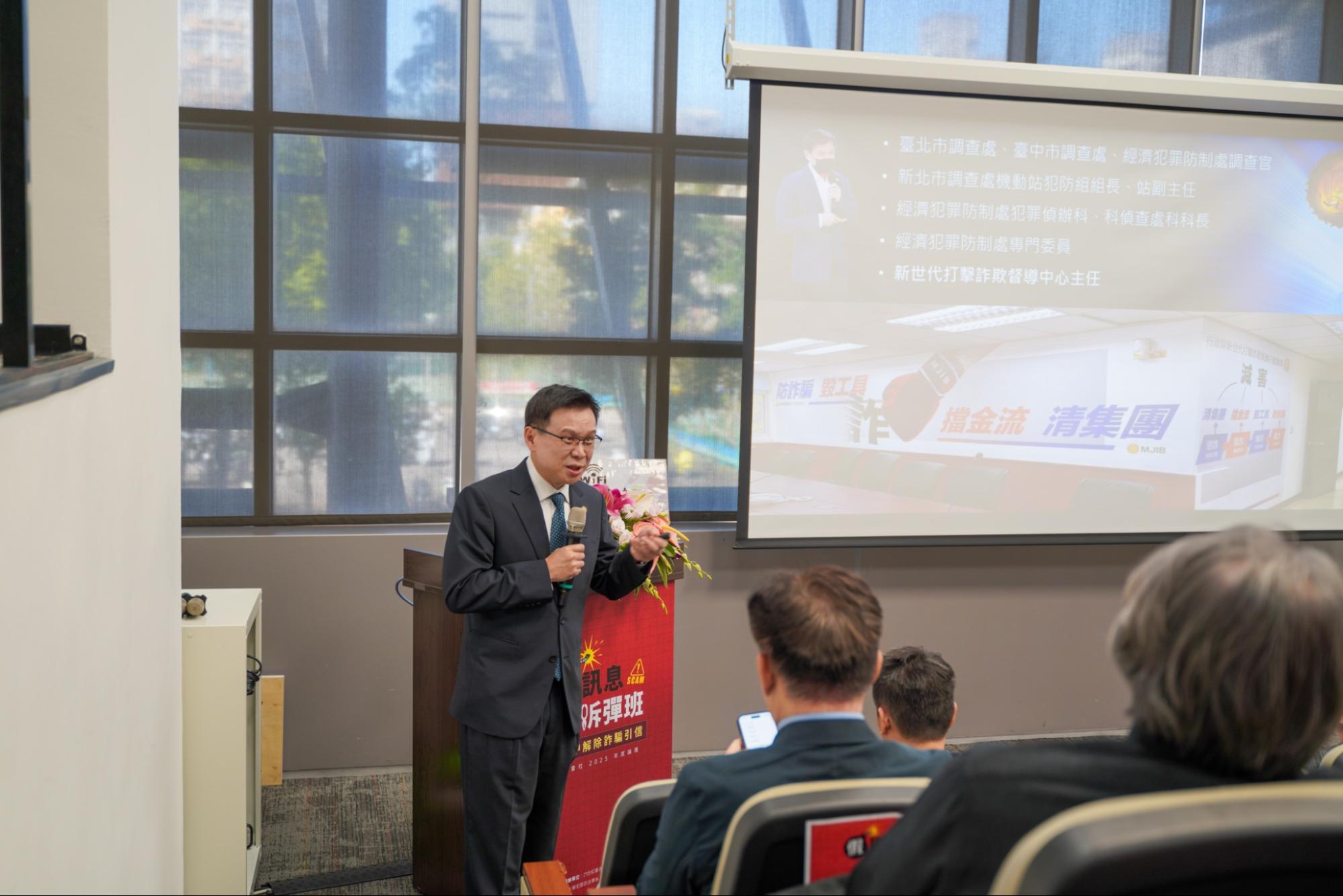 《全民查假會社》主辦的 2025 年度論壇「假訊息拆彈班」,由法務部調查局打詐督導中心主任陳茂益的專題演講打頭陣。具有豐富詐騙案件承辦經驗的他,以講題「公私協力反詐查假第一線之挑戰——破解詐騙虛實之間」,分享如何辨識詐騙集團的話術,進而實現防詐、打詐之道。