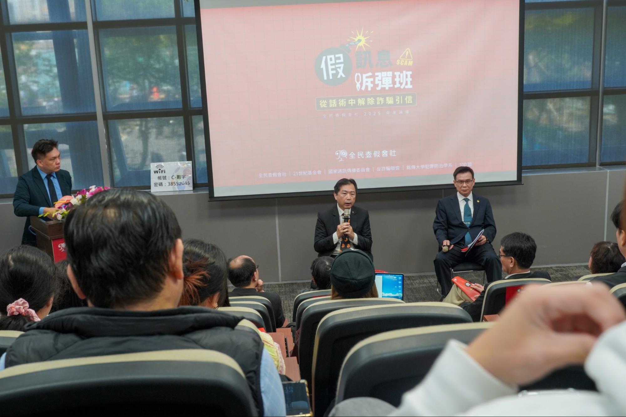 11 月 29 日於集思北科大會議中心登場的《全民查假會社》2025 年度論壇「假訊息拆彈班」,邀請到林書立擔任講者,他曾擔任刑事局預防犯罪科科長,退休後擔任反詐騙聯盟秘書長,同時也是銘傳大學犯罪防治學系助理教授。