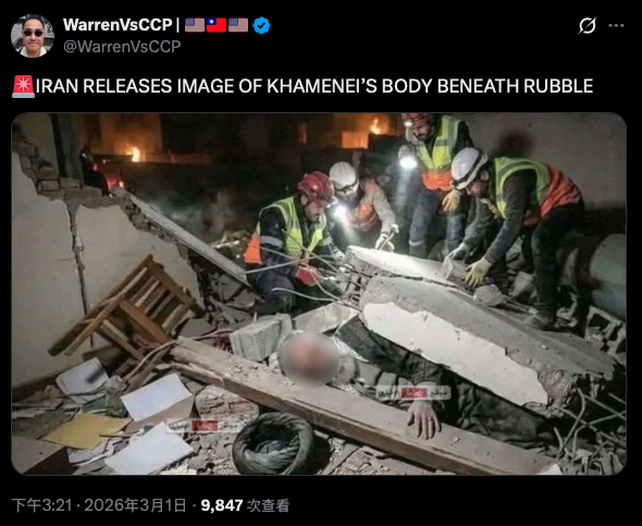 ▲ 從 X 到臉書貼文,都流傳伊朗領導人哈米尼身亡時的照片。(圖/翻攝 X)