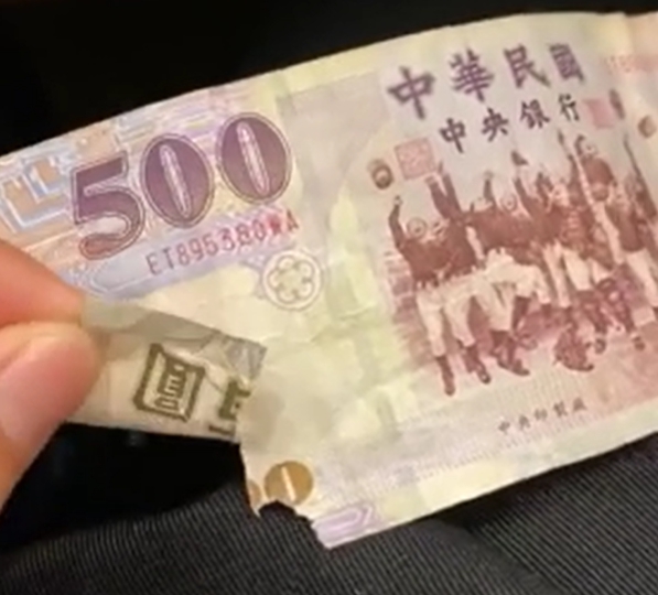 ▲ 破損的 500 元新台幣。(示意圖/翻攝 Dcard)