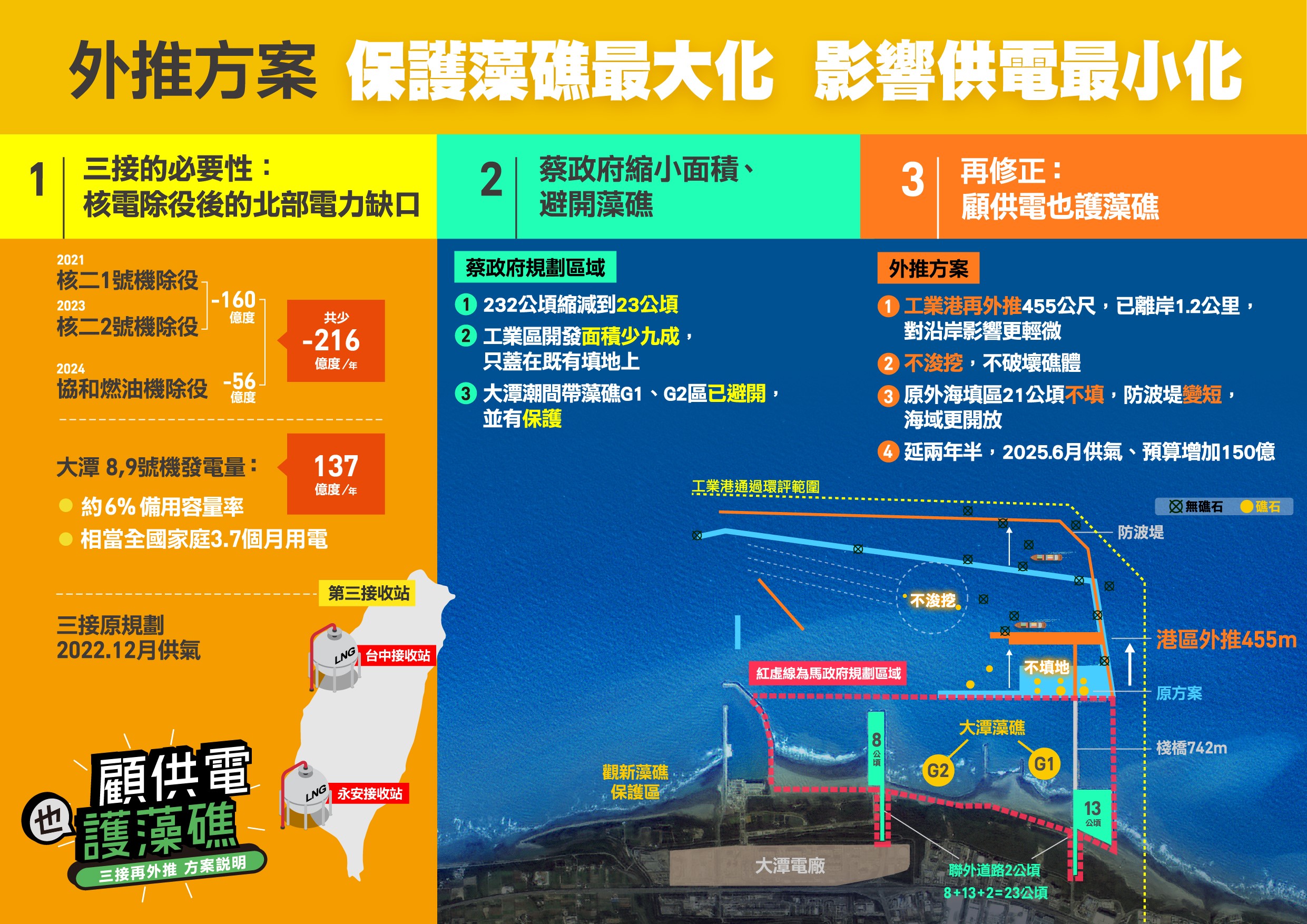 爭議點三:蔡英文說環境保護與國家發展可以雙贏,三接工程與藻礁是否可以共存?