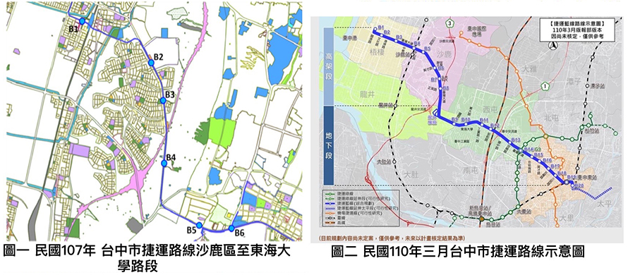 根據台中市府於民國110年1月12日召開之記者會中,台中市政府交通局長葉昭甫表示,因原本可行性研究近正英路所規劃預留 B4 站周邊倉儲物流開發皆無任何計畫,且現況及未來均無使用需求,經通盤考量地區整體發展、外圍人口分布、捷運站距及大眾捷運服務公益性,因當地交通進出主要仰賴英才路、正英路兩條聯外道路連接台灣大道,規劃將原預留站B4北移至正英路口設一般高架站,除可提供外圍地區捷運接駁轉乘服務,擴大捷運服務範圍,未來可利用車站旁之停車場用地配合接駁轉乘策略,有助於提升沙鹿地區上萬人口的大眾運輸服務及大眾運量培養。且過去方案就無法共構,沙鹿段路線優化,基於原可行性計畫需要地下穿越民宅70棟導致用地風險高、反覆高架-地下的變化對都市景觀造成衝擊、短距離四個轉彎會影響營運效率等因素,於綜合規劃重新評估該方案的路段長度、線形條件、用地取得、建設經費等因素後,將捷運路線「截彎取直」,以高架型式直行台灣大道,擴大沙鹿服務人口數,落實土地正義,減少建設風險、節省經費及預留與沙鹿火車站共站或共構之可行性。