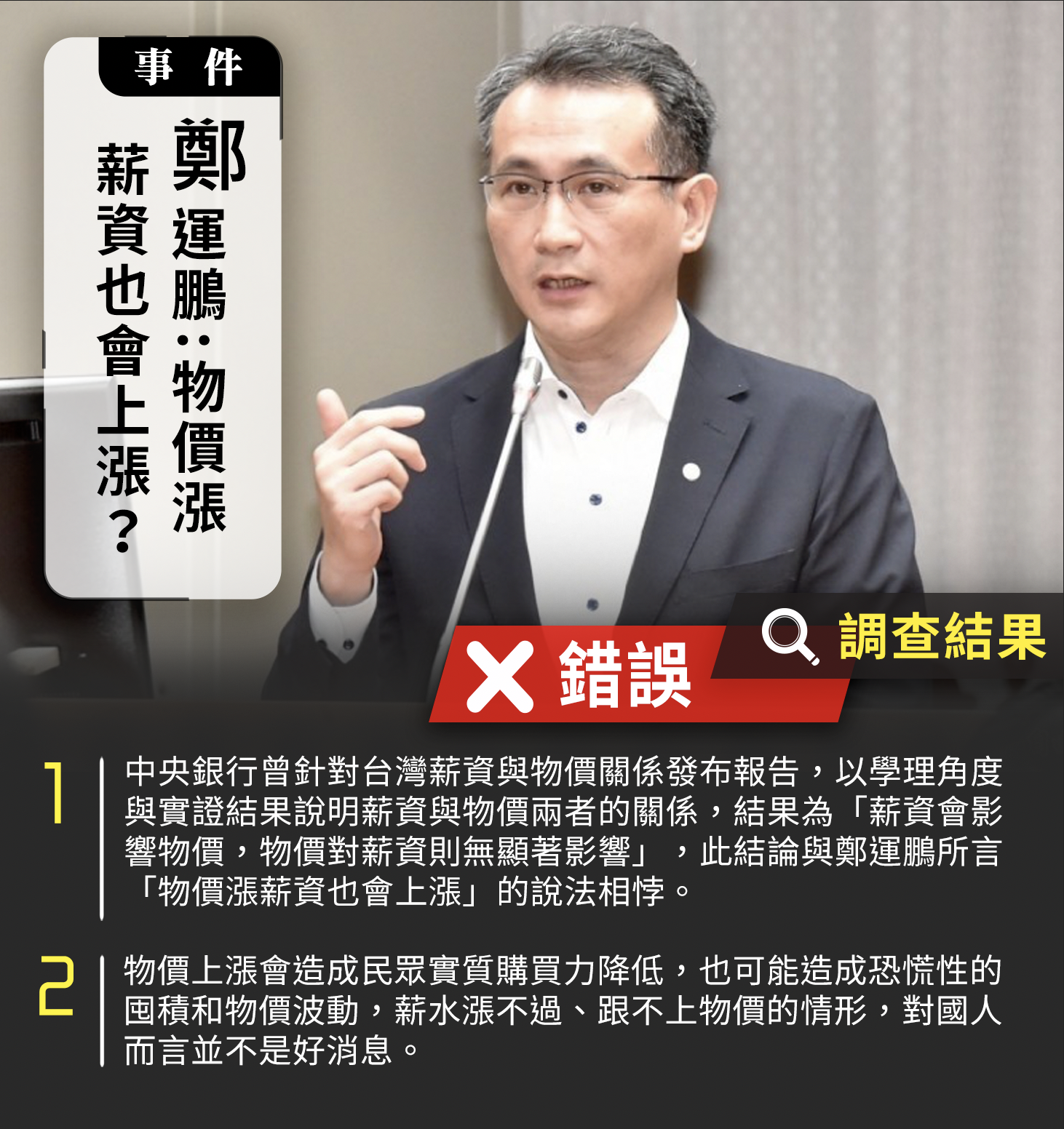 爭議點一:鄭運鵬所言,物價漲薪資也會上漲,是否屬實?