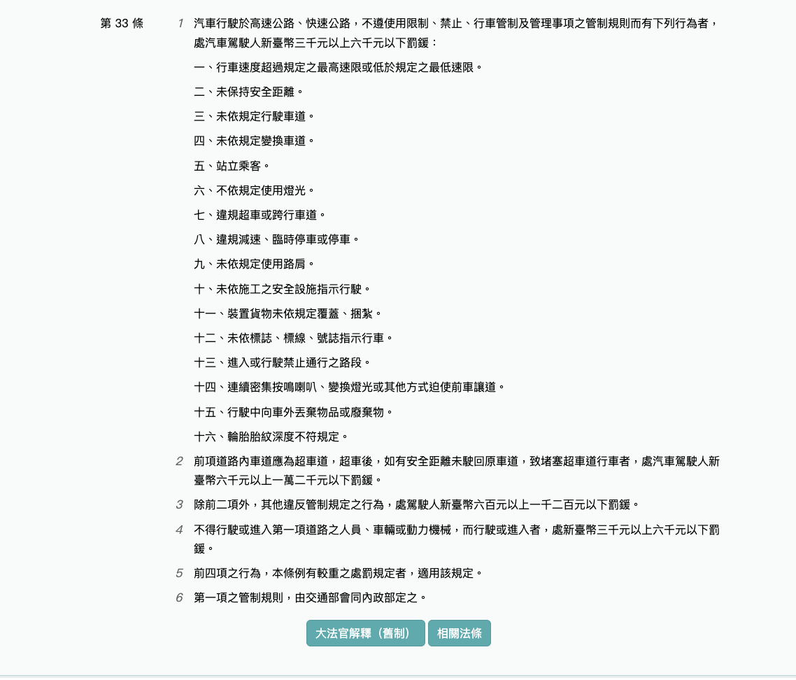 ▲《道路交通管理處罰條例》第 33 條。(圖/翻攝全國法規資料庫)