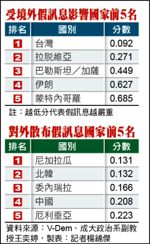 ▲ 受到境外假資訊影響、對外散佈假資訊的前五名。(圖/翻攝網路)