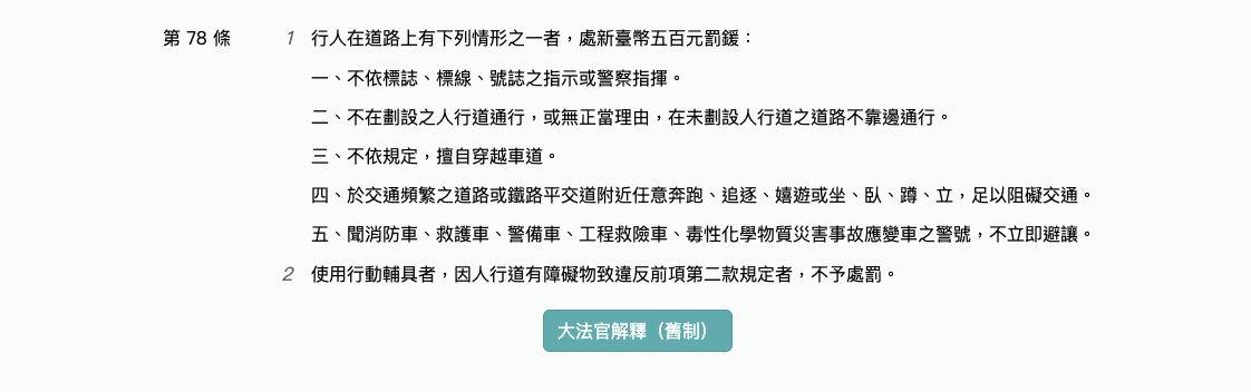 ▲ 《道路交通管理處罰條例》第 78 條相關規定。(圖/翻攝全國法規資料庫)