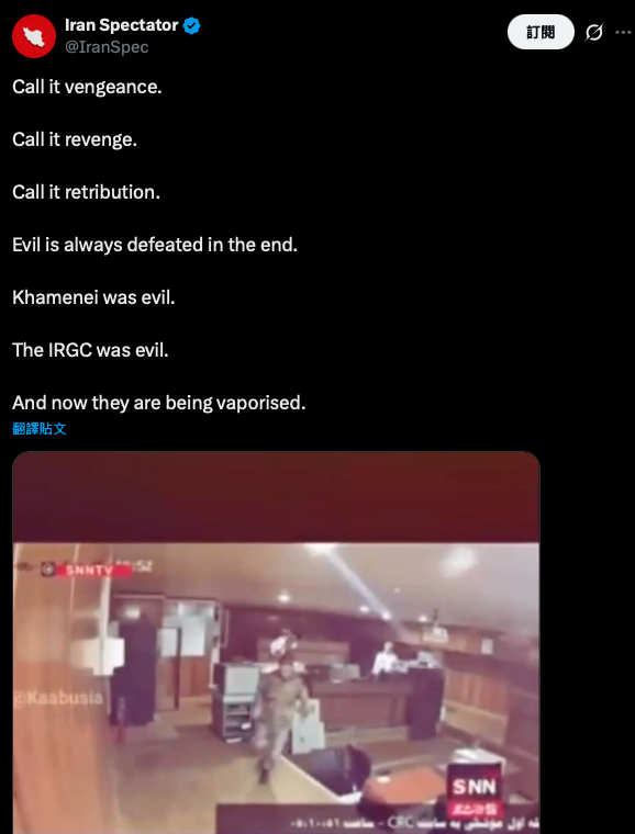 有網友在 X 發布影片,曝光伊朗進行攻擊當下,許多民宅或大樓爆炸的畫面,並痛批「這是一個邪惡的政權」。
