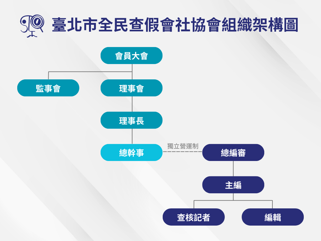 第三條:本會社設置獨立運作之指導委員會,負責督導編輯團隊,定期審核主題選擇、查證報告內容等,以維護查核品質。